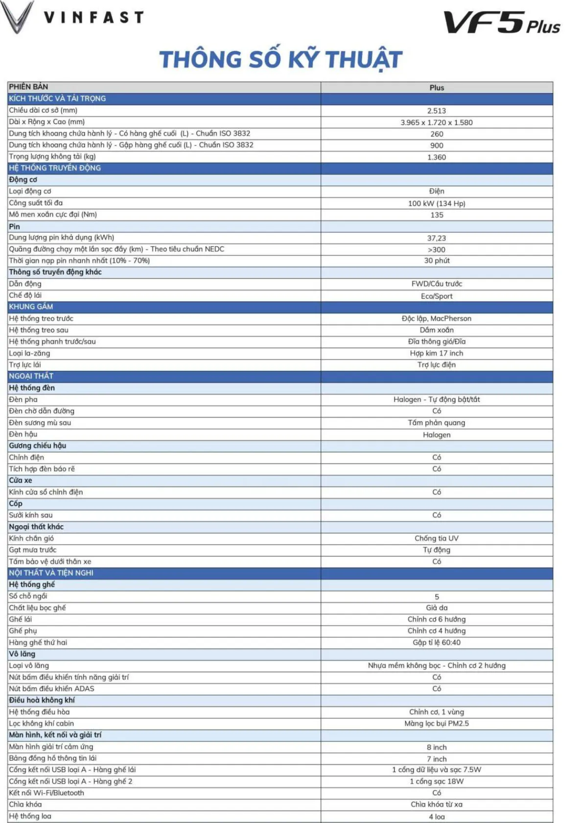 | Vinfast VF5 Plus +Pin: | 507.840.000 ₫ đ |