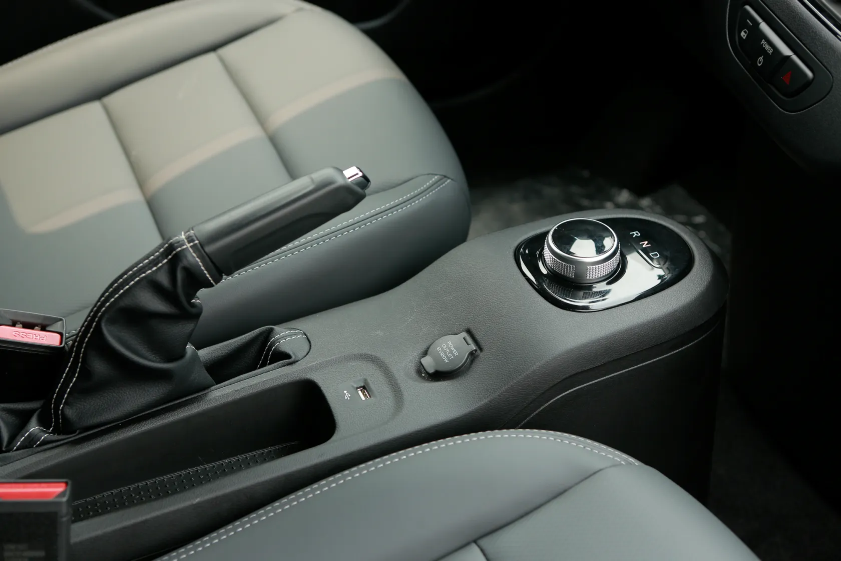 Phía dưới màn hình trung tâm là cần số và phanh tay điện tử được tích hợp dạng lẫy gạt. Các nút chức năng xoay điều khiển hệ thống giải trí, bấm đèn khẩn cấp, hạ kính bố trí ngay cạnh khay đựng cốc giống “đàn anh” VF8 và VF9.