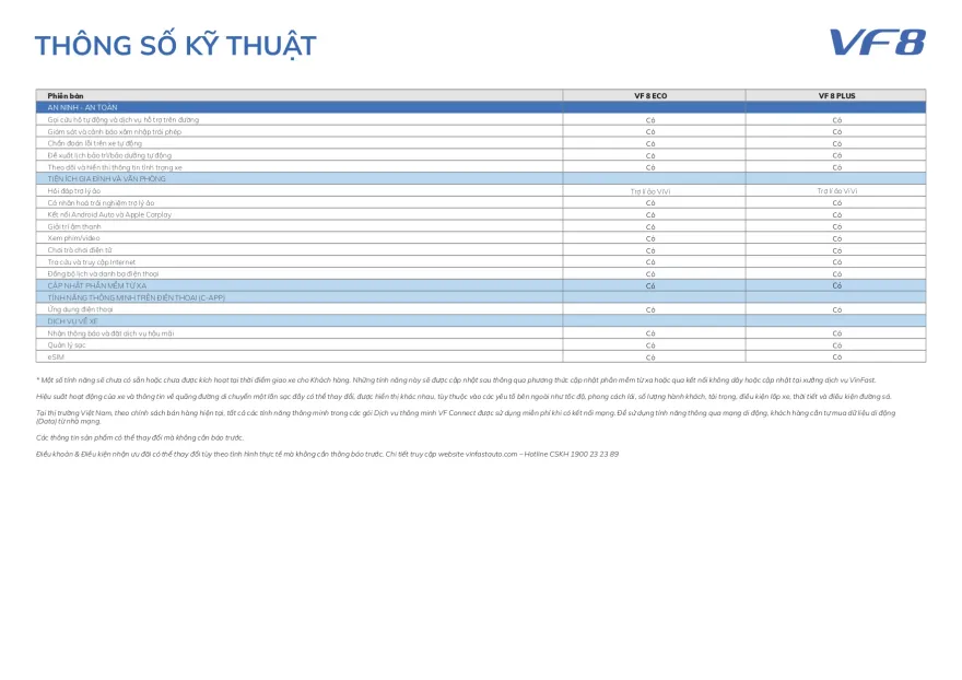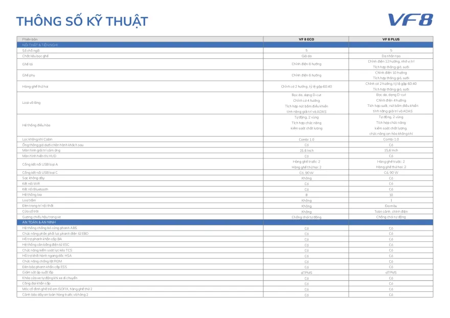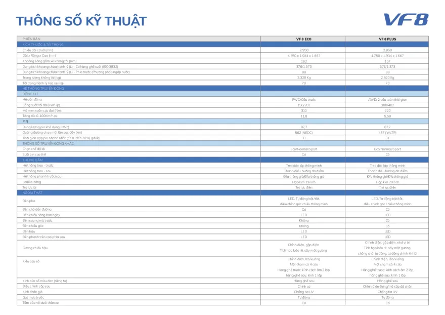 | Vinfast VF8 Eco +Pin: | 978.240.000 ₫ đ |