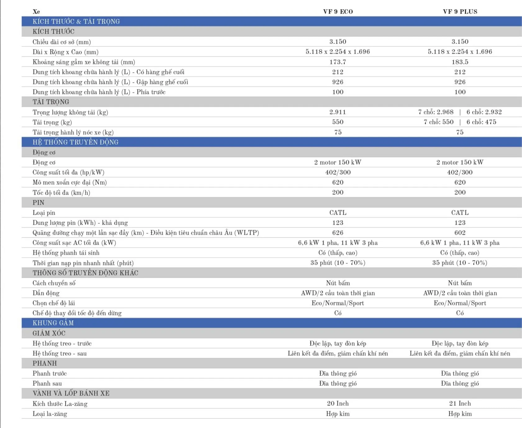 | Vinfast VF9 Plus Trần Thép + Pin: | 1.631.040.000 ₫ đ |