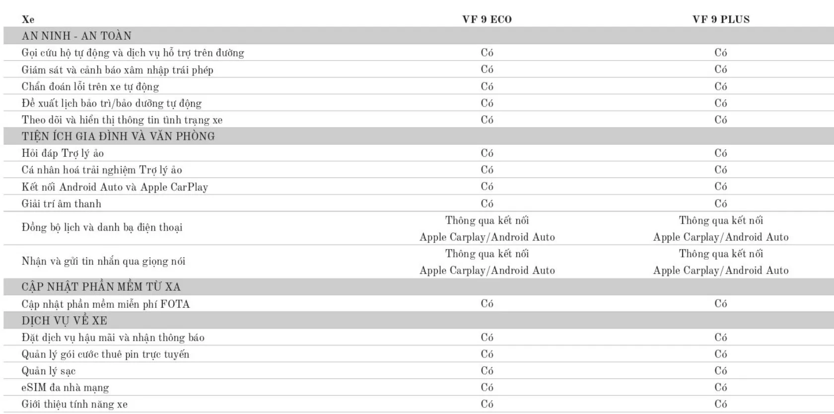 | Vinfast VF9 Eco + Pin: | 1.439.040.000 ₫ đ |